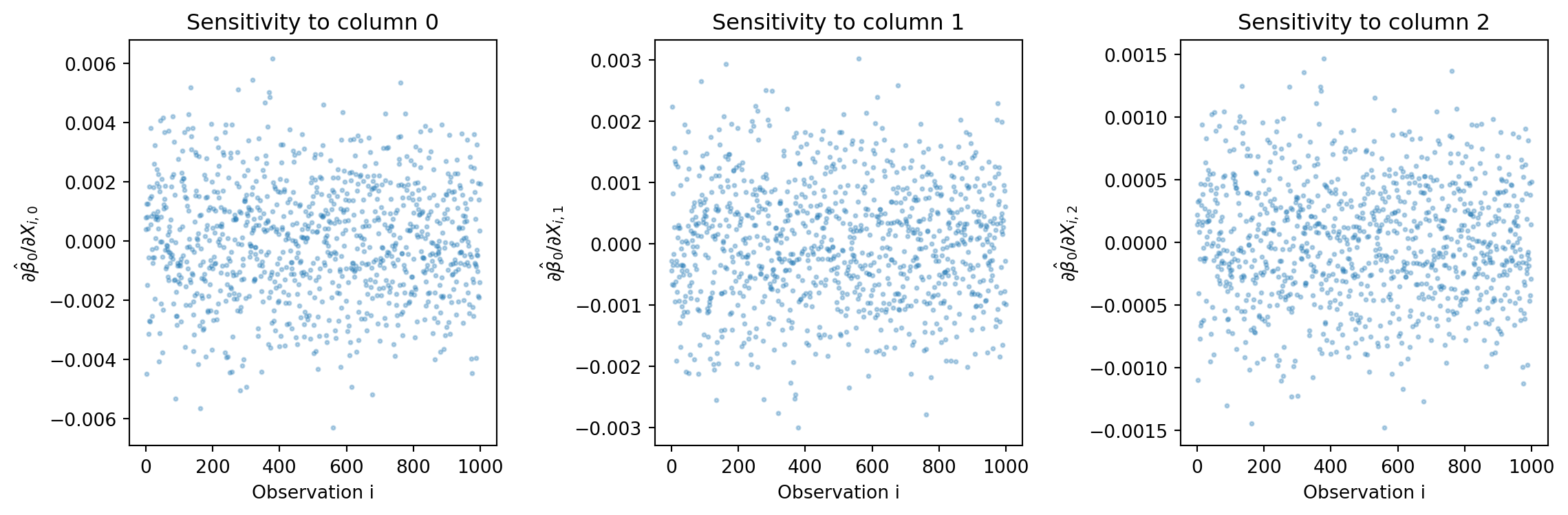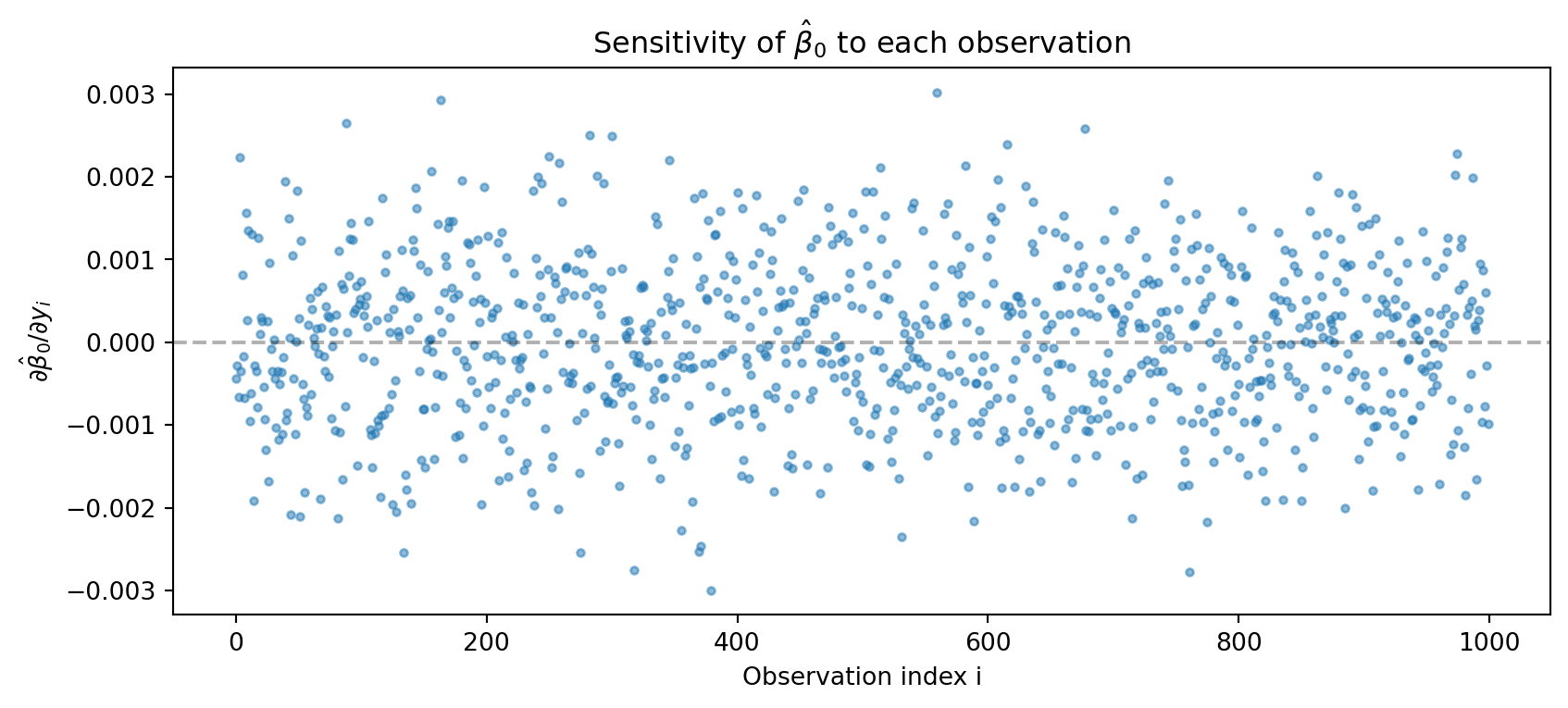 # plt.title('Sensitivity of $\\hat{\\beta}_0$ to each observation')