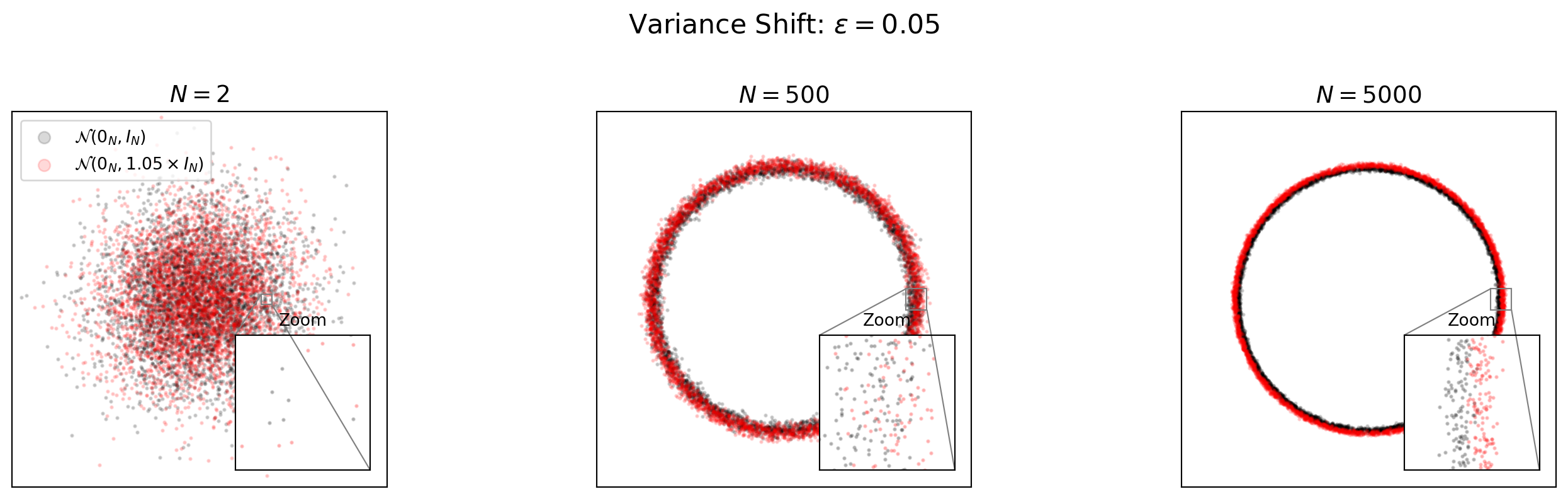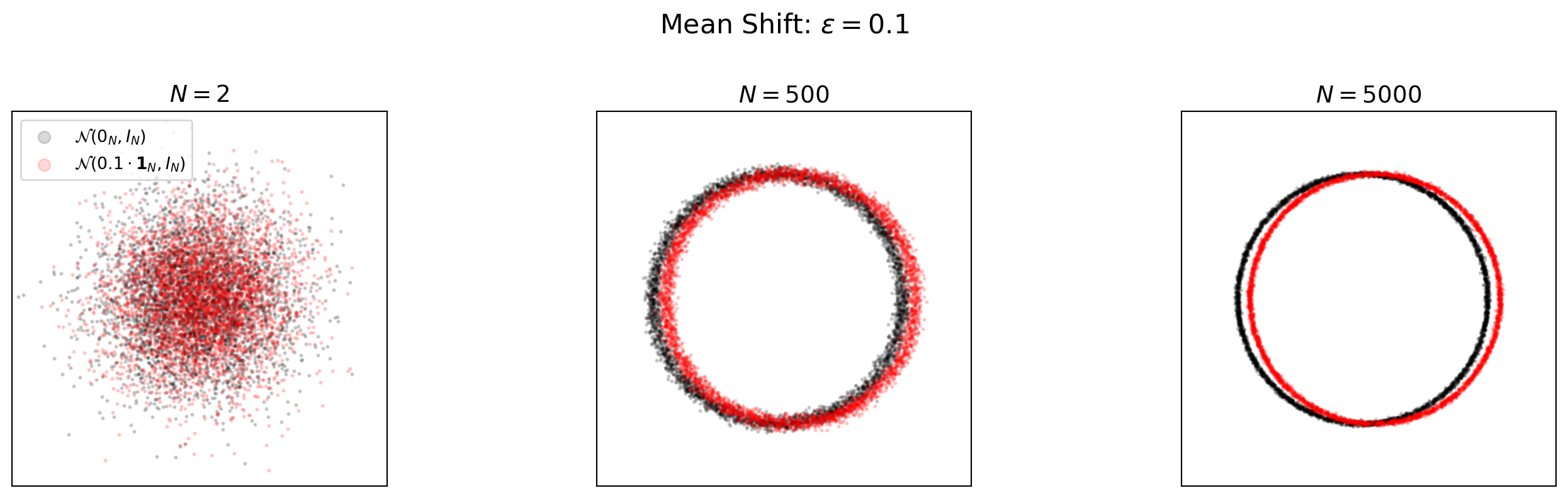 \(\bar{X} \sim \mathcal{N}(0, 1/N)\): variance shrinks as \(1/N\)