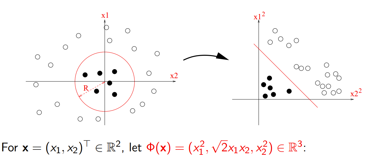 Generalizing our previous case, \(\mathcal{K}(x,x') \equiv (x \cdot x')^2\), to polynomial order \(p\) with cross-products \[ \mathcal{K}(x,x') \equiv (x \cdot x' + c)^p \]