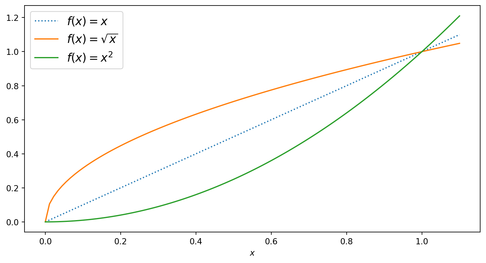 Lets check derivatives! Let \(f_1(x) = \sqrt{x}\) and \(f_2(x) = x^2\)