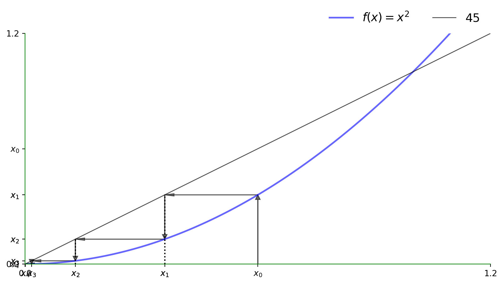 \[ x_{t+1} = a x_t + b \equiv f(x_t),\quad \text{ given }x_0 \]