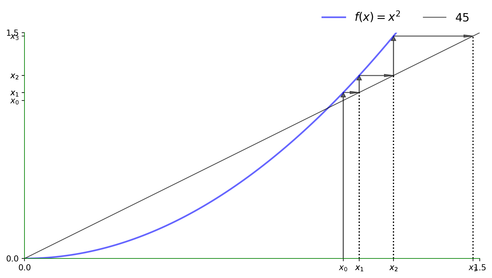 Let \(f : S \to S\) where we will assume \(S \subseteq \mathbb{R}^N\). Then a fixed point \(x^* \in S\) of \(f\) is one where