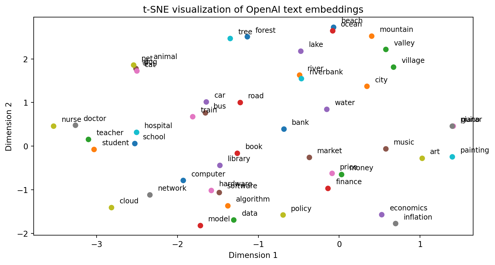 sim(e_3, e_4) > sim(e_3, e_2) even though they seem to have the exact opposite meaning!# Sample a small list of common words and embed them via OpenAIEmbeddings