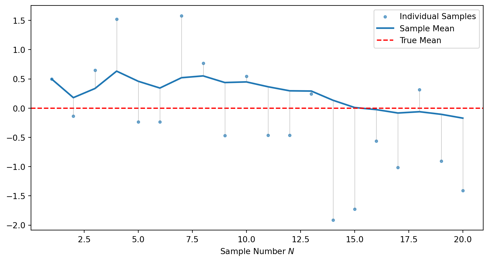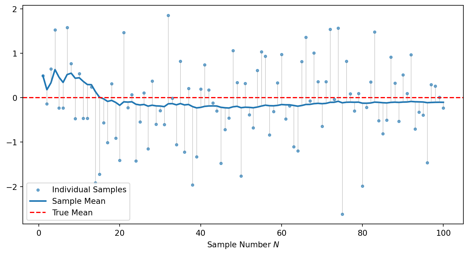 Define the sample mean \(\bar{X}_N \equiv \frac{1}{N} \sum_{n=1}^N X_n\)