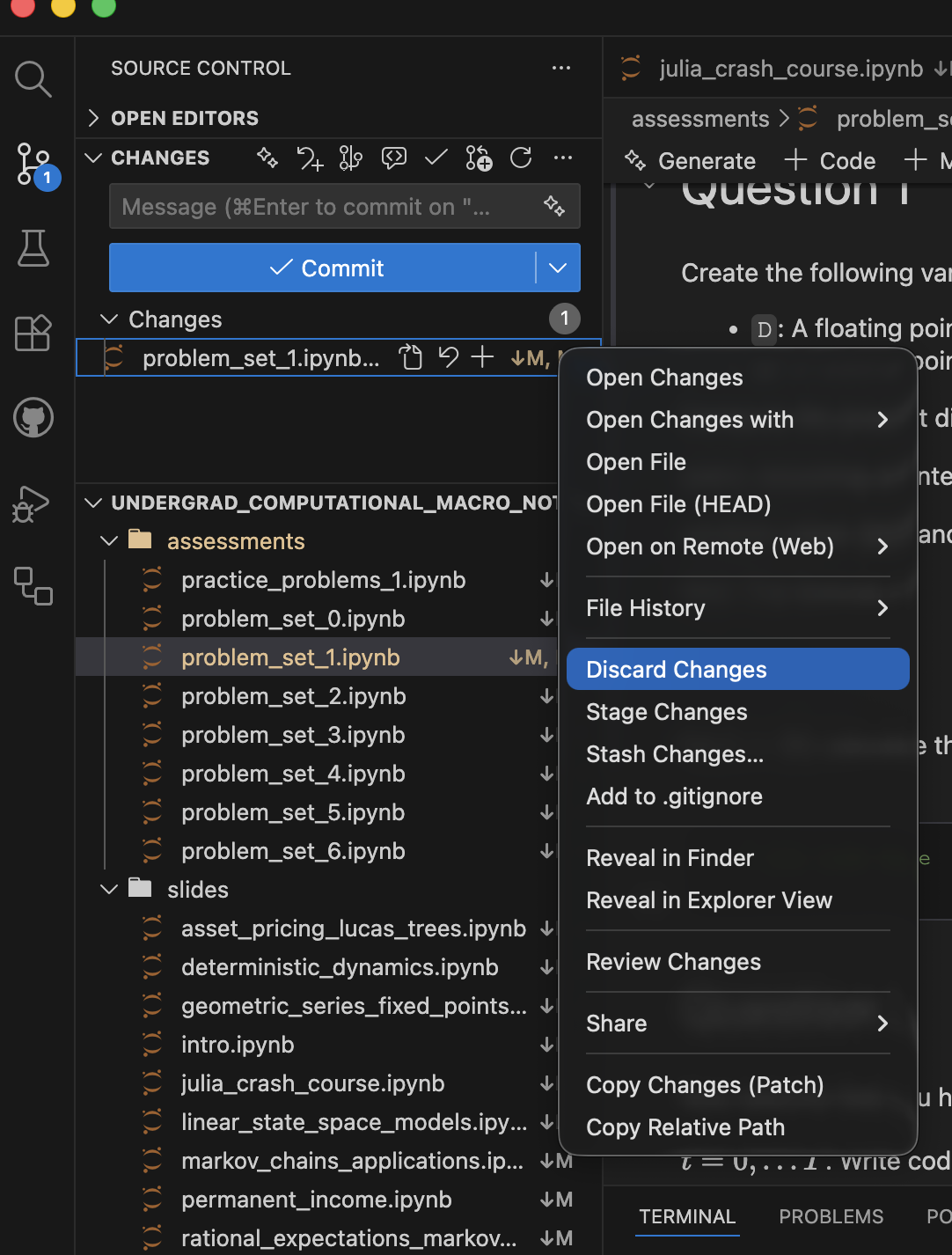 winget install julia -s msstore in a terminalcurl -fsSL https://install.julialang.org | sh in a terminalOpen the command palette with <Ctrl+Shift+P> or <Cmd+Shift+P> on mac and type > Git: Clone and choose https://github.com/jlperla/undergrad_computational_macro_notebooks