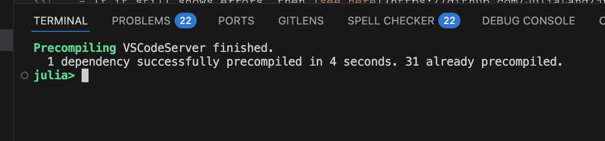 ] instantiate setup install a bunch of pacakges, you likely didn’t start the Julia REPL in the VS Code terminal