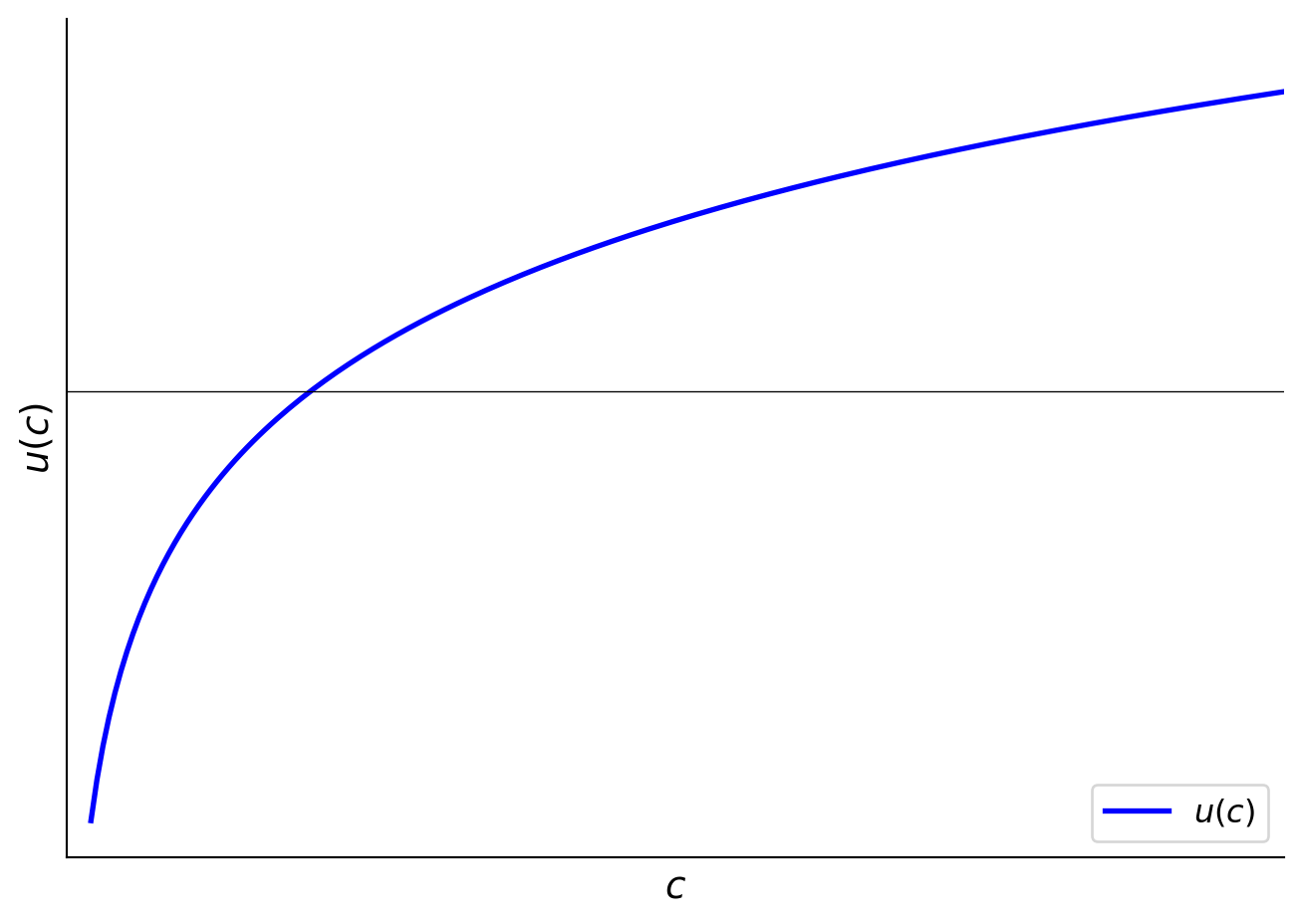 \[ u(c) = \log(c), \quad T \leq \infty \quad \Rightarrow \quad u'(c) = \frac{1}{c} \]